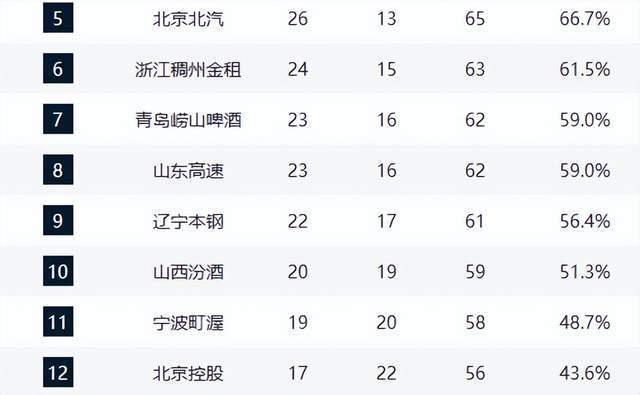 在第四名的争夺中,广东与北京首钢展开激烈角逐,双方仅一步之遥,最终排名将由最后三轮的直接交锋与对手实力决定。广东队目前稍占优势,末段赛程对阵福建、山西、福建,对手实力相对有限,若能把握住机会,有望稳居第四。而山东、浙江、青岛、辽宁、山西五队均已确保季后赛席位,但5至8名的排位仍扑朔迷离,直接影响季后赛主场优势的归属。山东队近期遭遇四连败,跌至第八位,未来三战不容有失,必须全力守住前八门槛,避免陷入附加赛的泥潭。